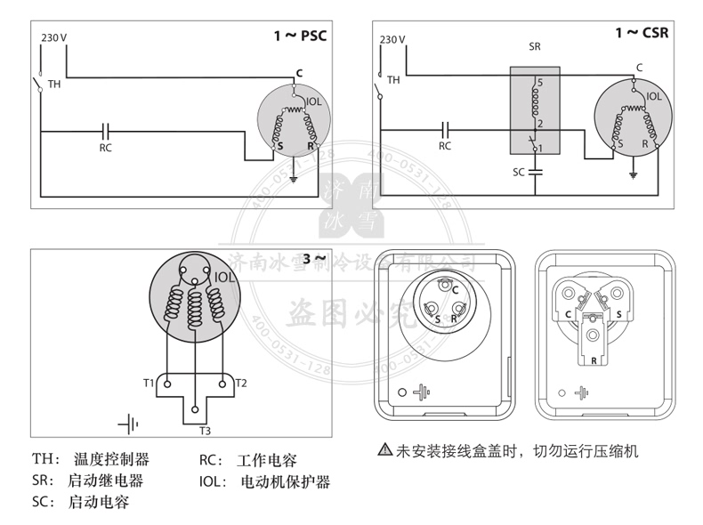 所有電氣組件的選擇必須依據當地標準和壓縮機要求進行。